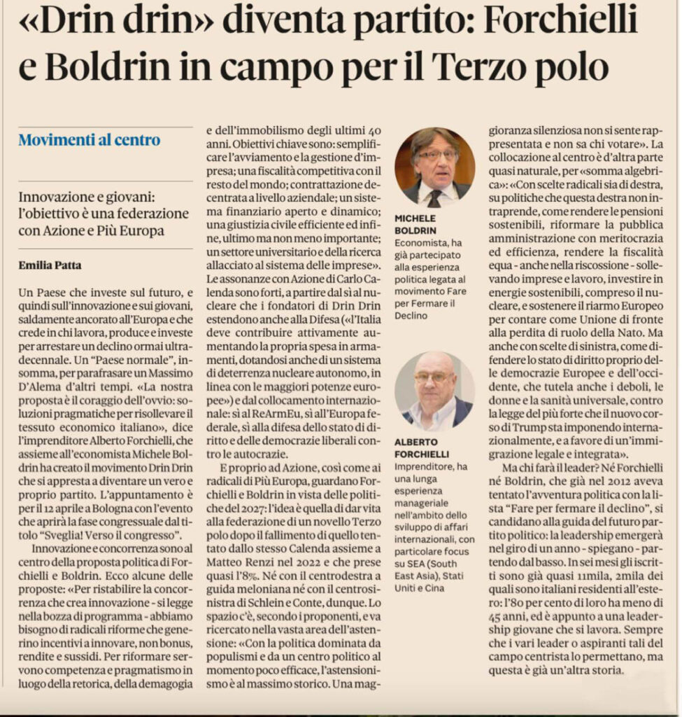 «Drin drin» diventa partito: Forchielli e Boldrin in campo per il Terzo polo