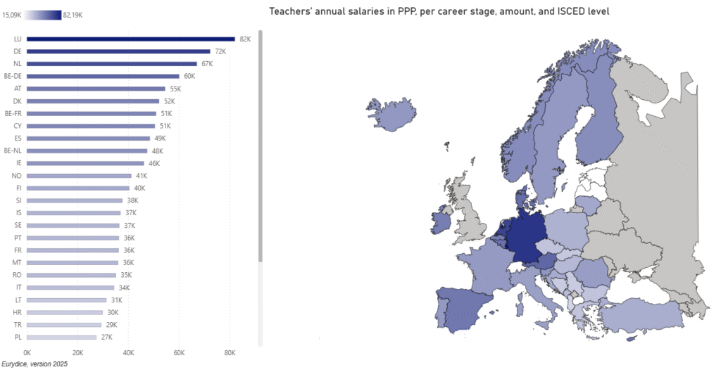 Sul versante della valutazione, l’Italia si distingue per l’assenza di un sistema organico di incentivi economici al personale docente meritevole, basato sulla qualità didattica, e il 27% degli insegnanti italiani dichiara di non aver mai ricevuto feedback formali sul proprio lavoro. Inoltre, le opportunità di carriera sono limitate e le attività aggiuntive scarsamente retribuite, mentre gli stipendi sono significativamente inferiori alla media OCSE a parità di anzianità.