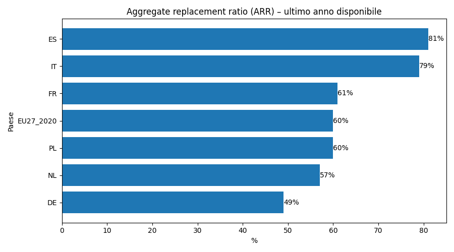 Nonostante le Riforme, il tasso di sostituzione (il rapporto tra pensione e ultimo stipendio) è ancora alto rispetto alla media UE (Figura 5), dall’altro l’età effettiva di uscita è abbassata da canali anticipati.