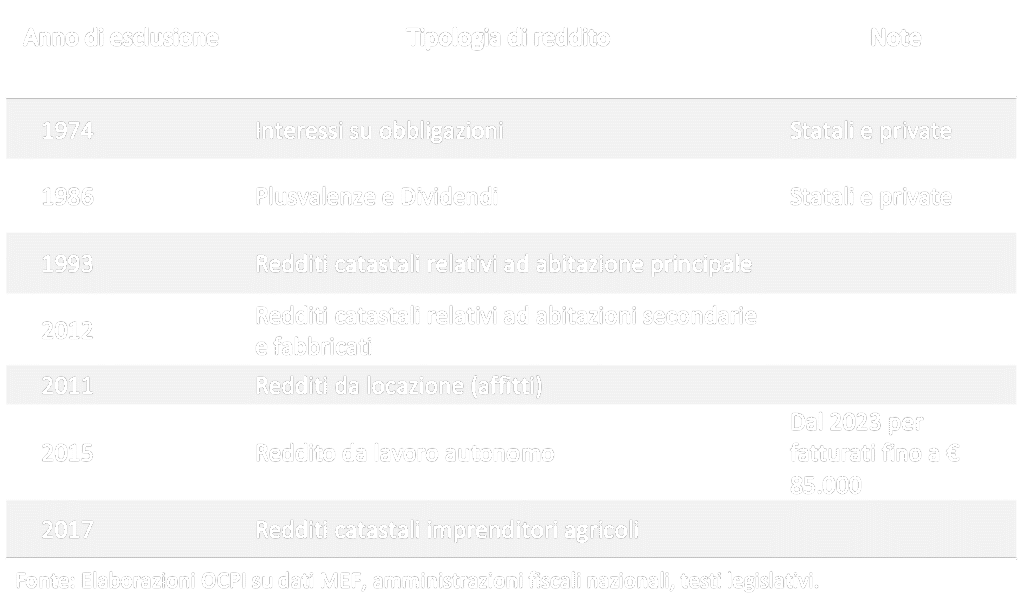 L’impianto del sistema tributario italiano risale agli anni ‘70, quando i redditi da lavoro dipendente costituivano la principale fonte di reddito degli italiani. Oggi questa quota si è ridotta a poco più del 40% dei redditi complessivi, ma l’IRPEF – che da sola genera quasi il 40% delle entrate tributarie – continua a gravare prevalentemente su questa categoria, che rappresenta quasi l’80% dei redditi assoggettati a imposizione progressiva. Lo squilibrio è accentuato dal progressivo spostamento di altre tipologie reddituali verso regimi proporzionali ad aliquote ridotte (Figura 5).