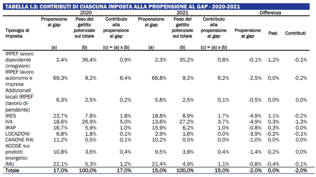 Chiudiamo con l’evasione fiscale, un problema storico dell’Italia. Le imposte più colpite sono l’IVA e l’IRPEF derivante da redditi di lavoro autonomo e d’impresa. Secondo il Rapporto Annuale sull’Economia Non Osservata, l’evasione fiscale ammontava a 82 miliardi di euro nel 2021, in calo rispetto ai 108 miliardi calcolati nel 2017 (MEF, 2024), ma ancora molto elevata in termini assoluti. L’economia sommersa resta intorno al 9% del PIL (ISTAT, 2024).